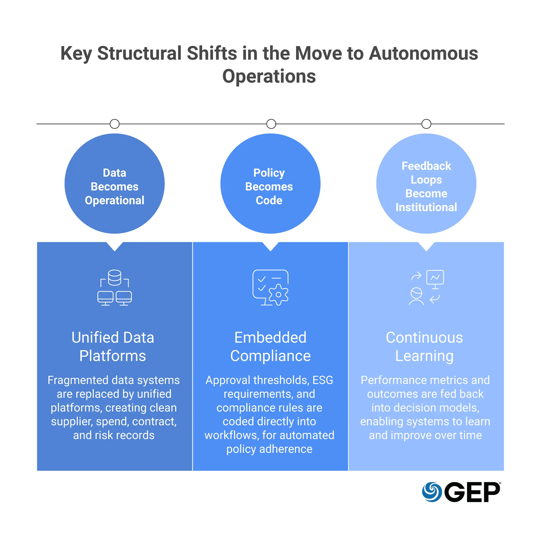 Three structural shifts define the move from digital to autonomous.
