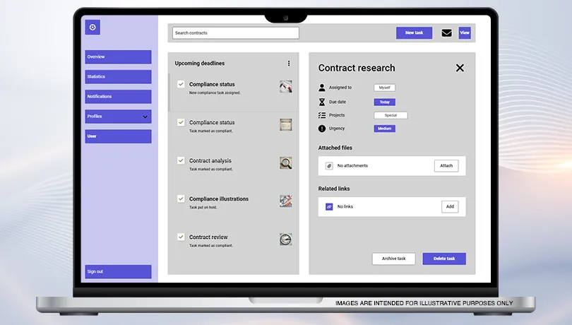 Quickly find any contract-related information you need – anytime, anywhere, from any device – with robust, free-text and string search of the centralized, web-based contract warehouse