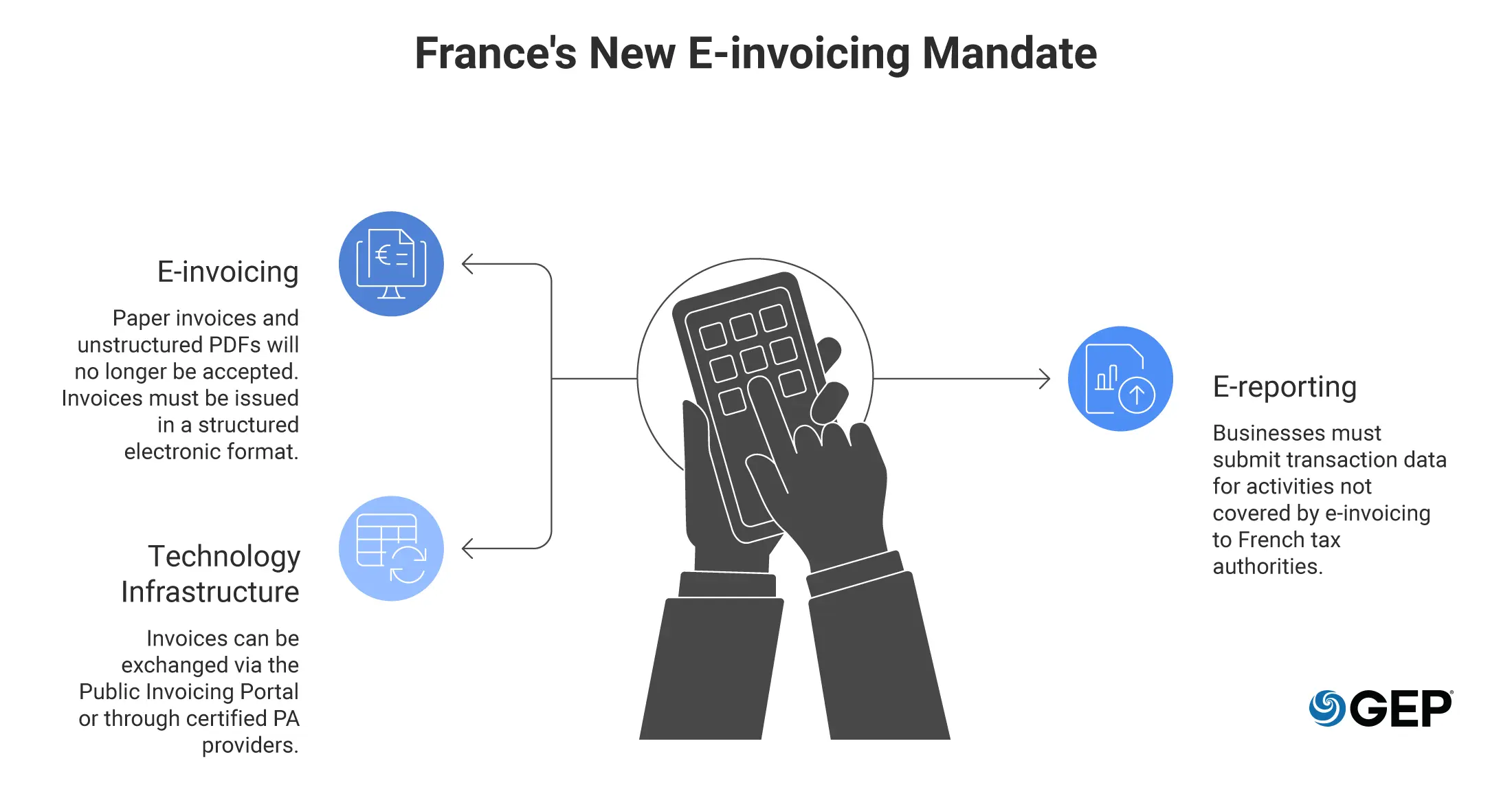 France’s model brings together two core obligations: e-invoicing for domestic B2B transactions and an e-reporting requirement.