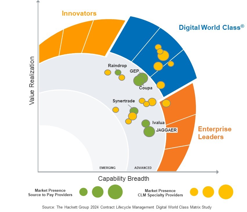 GEP has been named the #1 source-to-pay (S2P) end-to-end suite provider for enterprise contract lifecycle management (CLM) capabilities in the Hackett Group's inaugural Digital World Class™ Matrix report. Recognized for unparalleled value realization and functional breadth, GEP continues to redefine procurement excellence with its AI-powered, unified platform.