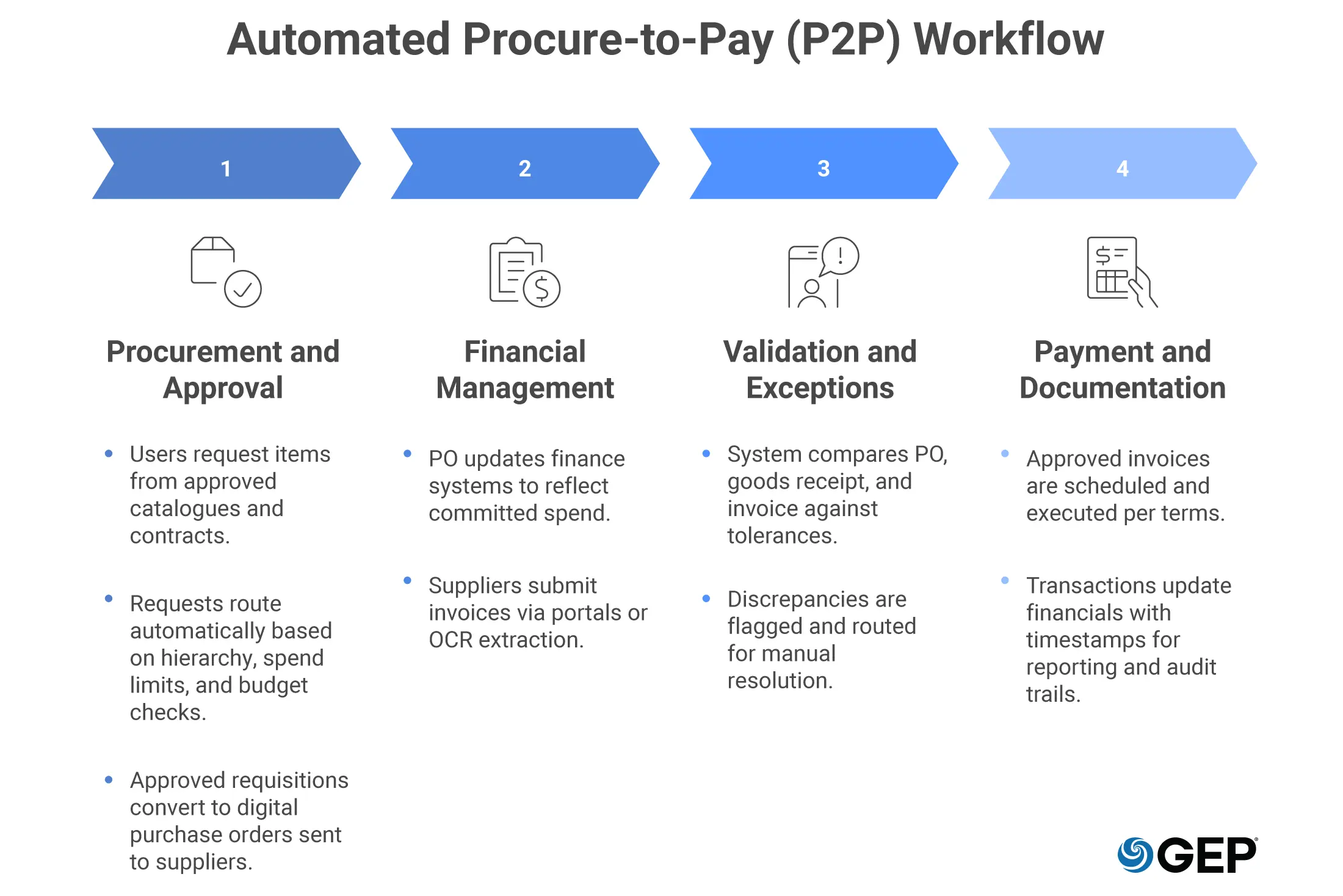 Modern P2P platforms change the equation because they do more than record transactions. They interpret activity as it happens. The system tracks what was ordered and what arrived. Approvals connect directly to payment decisions using the same logic across large transaction volumes.