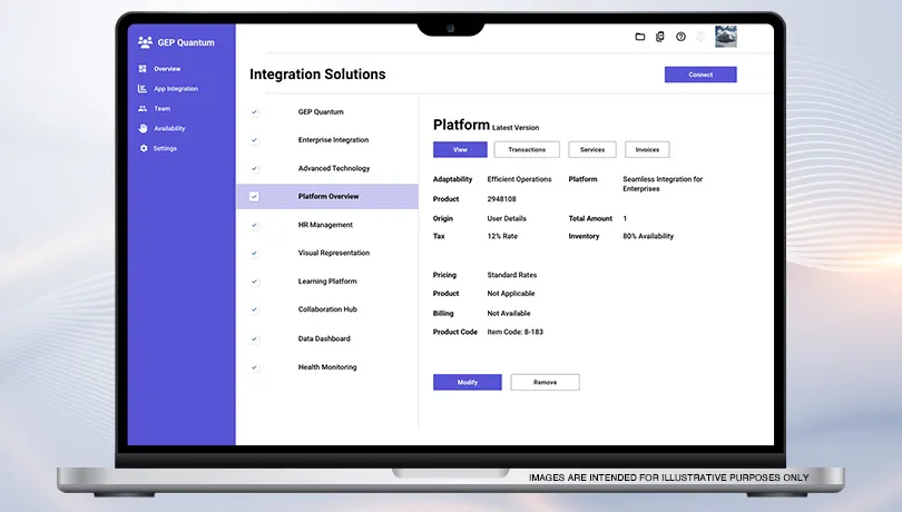 GEP QUANTUM, der weltweit führende Anbieter von digitaler Beschaffung und Lieferkettentransformation, ist eine effiziente, erweiterbare und benutzerfreundliche Cloud-Integrationsplattform, die Unternehmen die Integration mehrerer Plattformen in heterogenen und komplexen Landschaften ermöglicht.