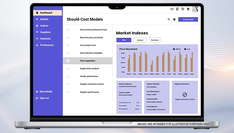 - Erhalten Sie umfassende Transparenz: Führen Sie überzeugendere und selbstbewusstere Verhandlungen mit Lieferanten mit einer vollständigen 360-Grad-Sicht auf die Kostenstruktur.