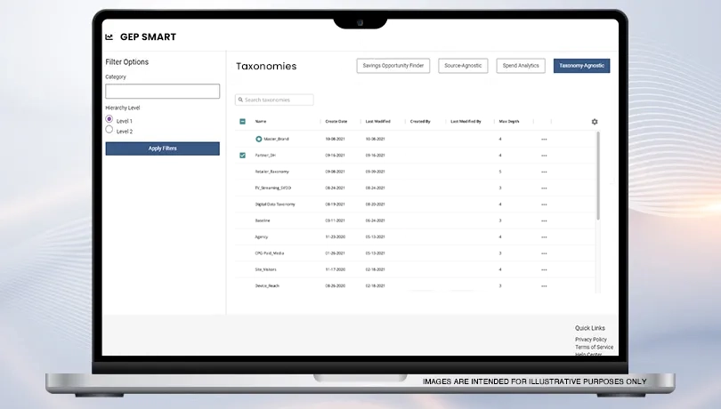 GEP SMART offers flexibility with taxonomies, whether it’s UNSPSC or a custom one tailored to your needs. With GEP’s expertise, you can even classify data across multiple taxonomies simultaneously.